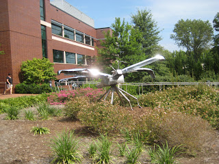 From there, we were off to Cary, NC for the PAQA-South exhibit at the Page-Walker House. Before we even looked at the quilts, we decided to visit the temporary outdoor sculpture exhibit in the gardens before it got too hot. This piece was one of my favorites. It has two layers of scroll work, with light diffused differently through the varying sizes of openings.