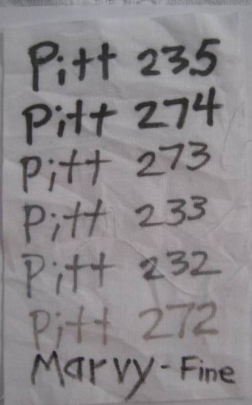 Before the group arrived, I did a few experiments. First, I wrote on PFD fabric with various black markers, then hand-washed the fabric and let them dry. I decided not to use any Sharpies for lettering on fabric, since most of them bleed.