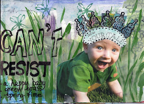 The next one should have been done in my mixed-media journal. Instead, it is on sketchbook paper, and is curling a bit from all the collage and gel medium I used. The quote by Vera Brittain: "I thought that spring would last for ever more- for I was young and loved, and it was May."